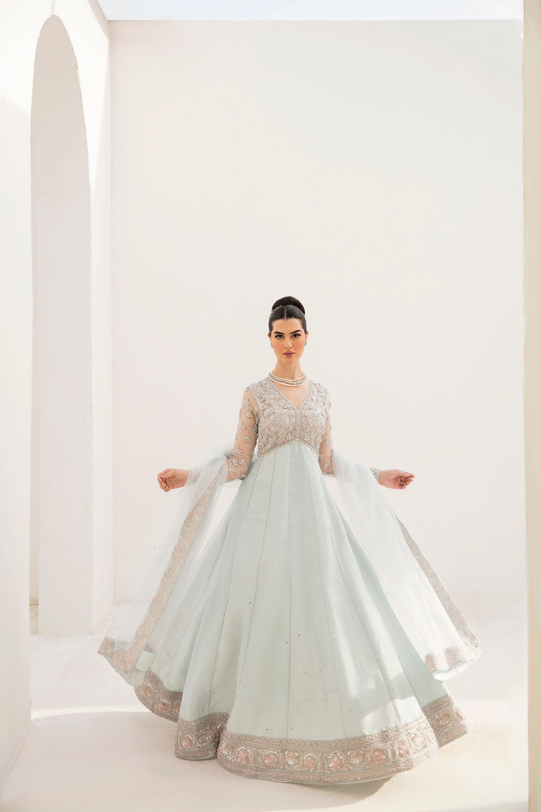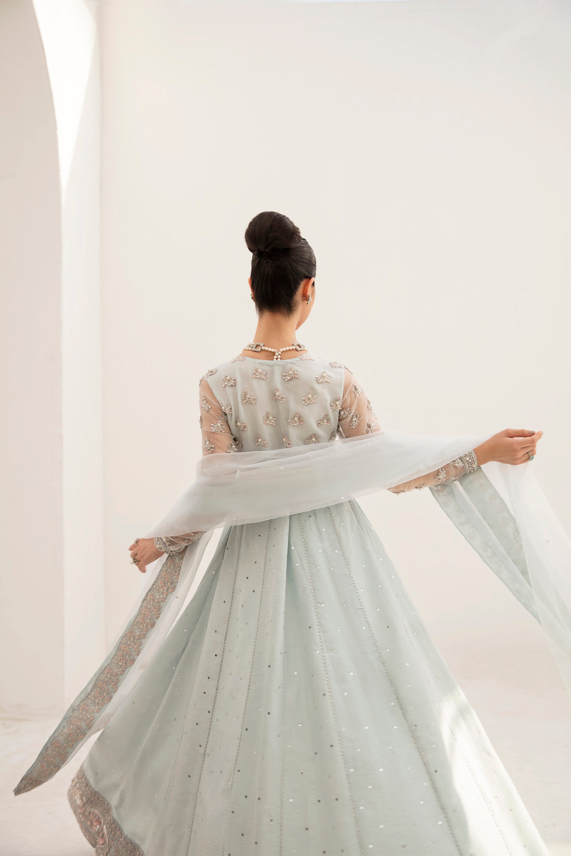 Description: Make a striking impression and captivate all eyes in our showstopper ice-blue pishwas!