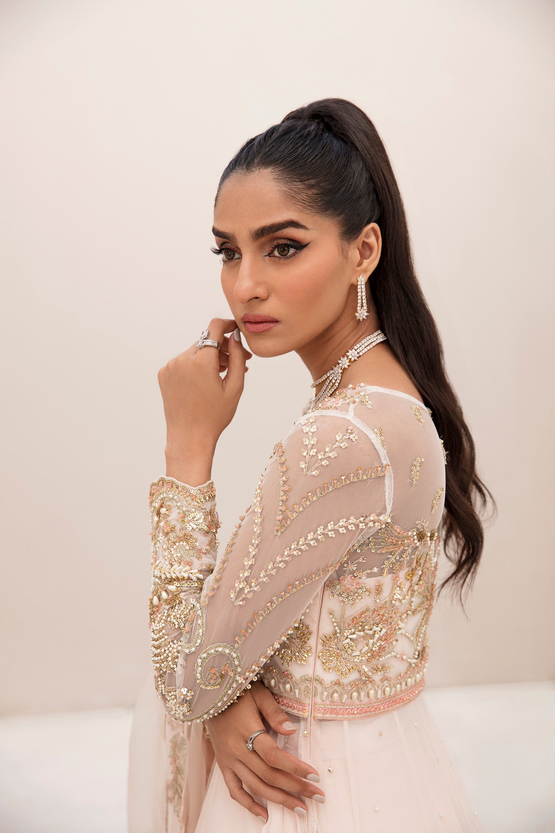 Description: Immerse yourself in a world of ethereal elegance with our resplendent paneled pishwas.