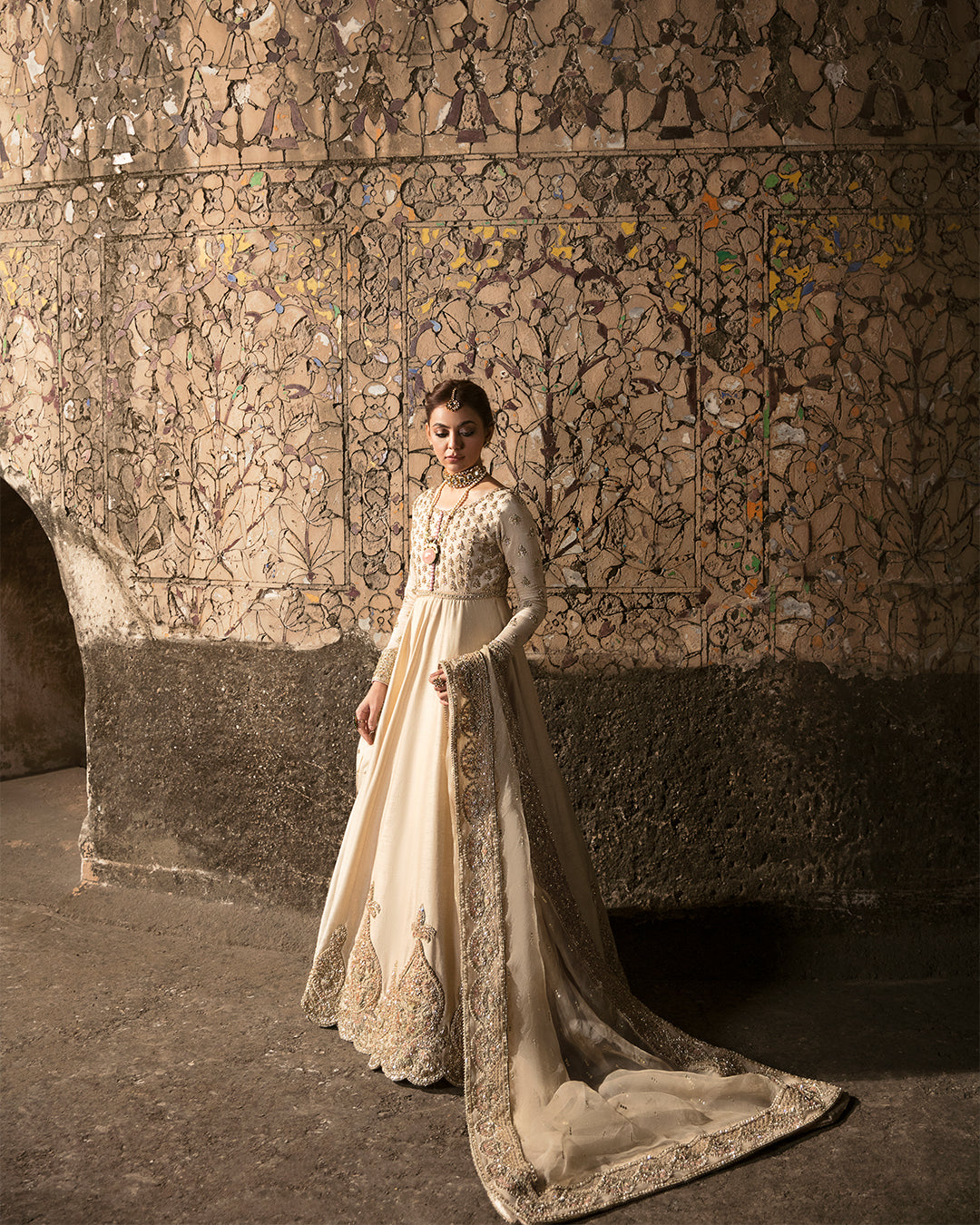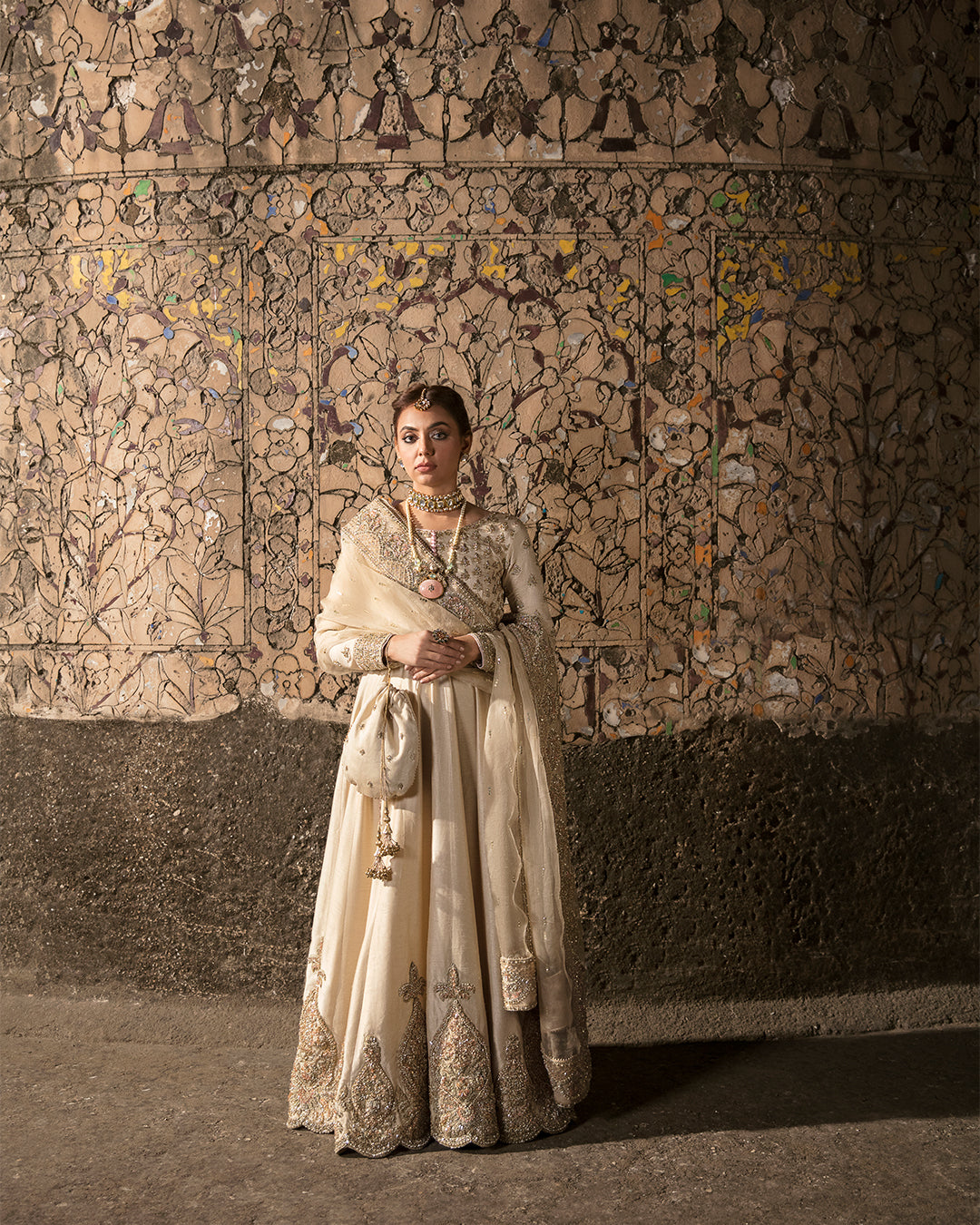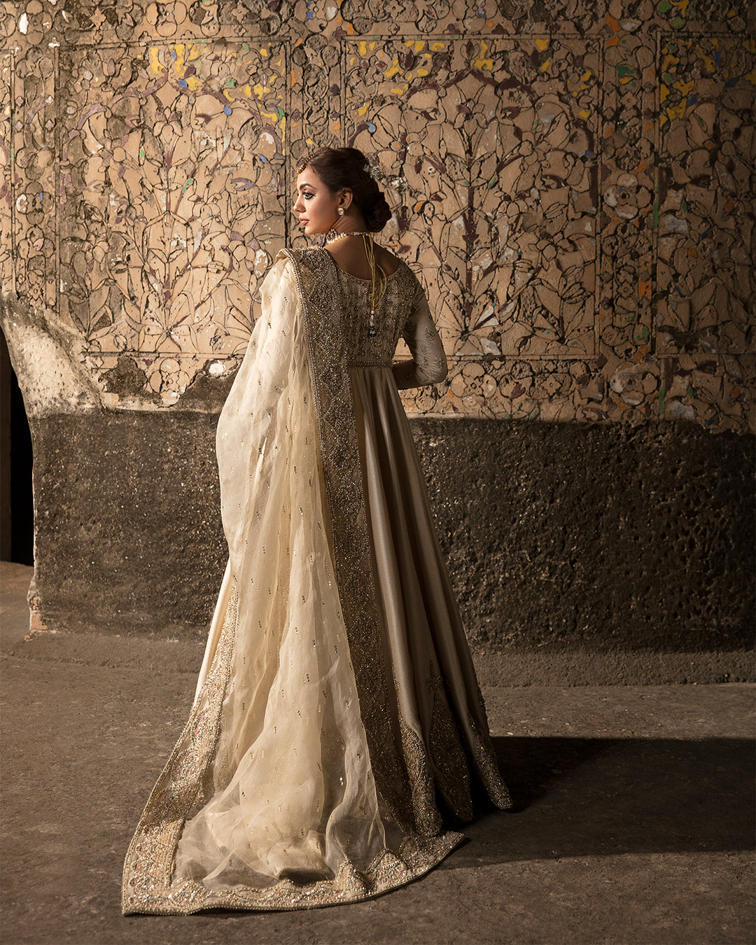 Description: Indulge in opulent extravagance and make heads turn with your mesmerising charm in heavily embellished raw silk pishwas.