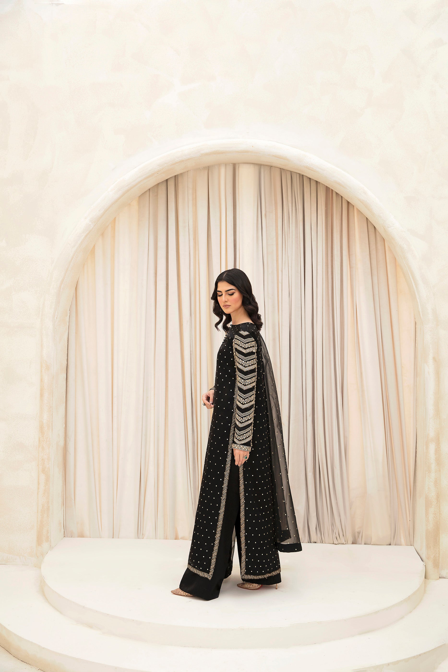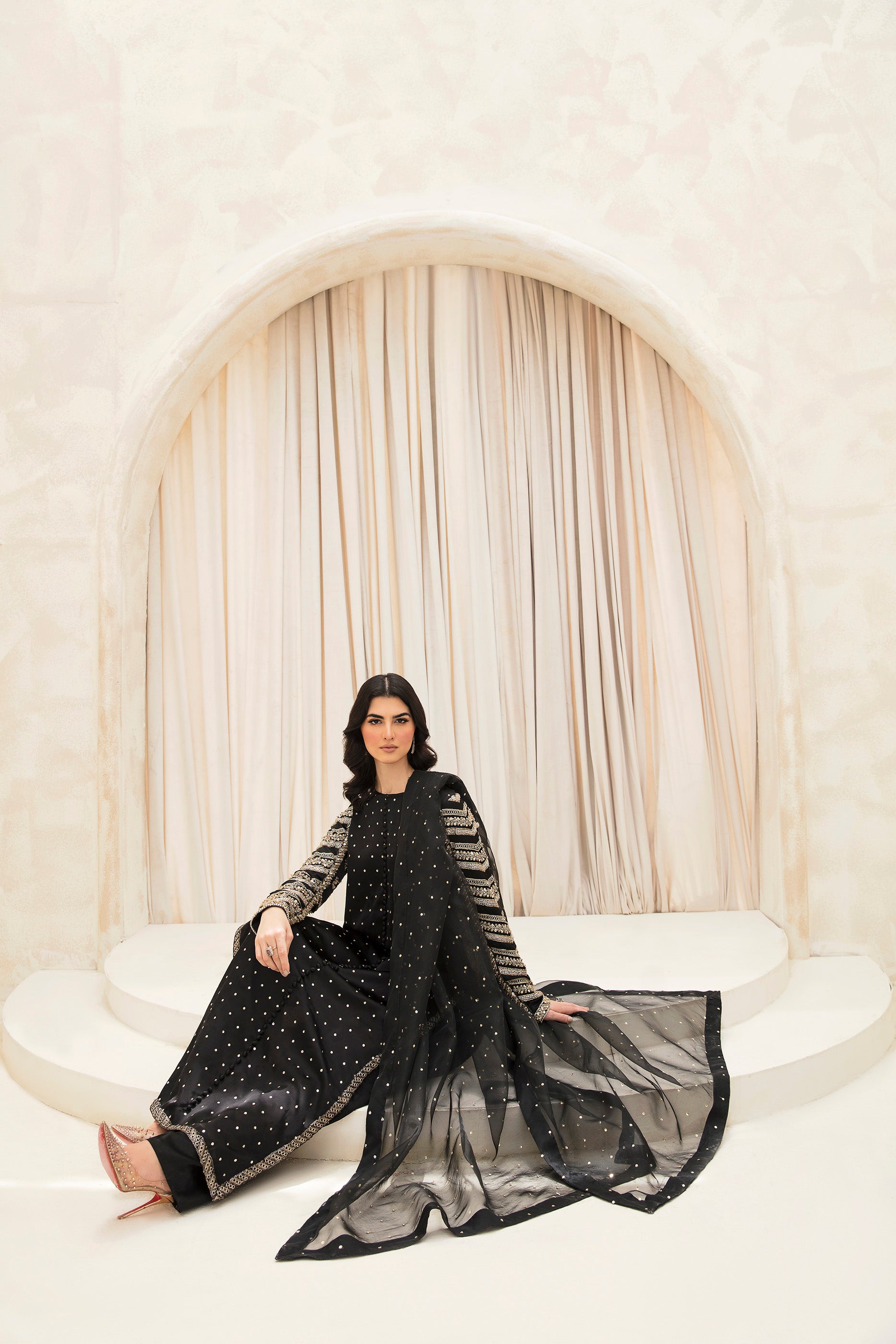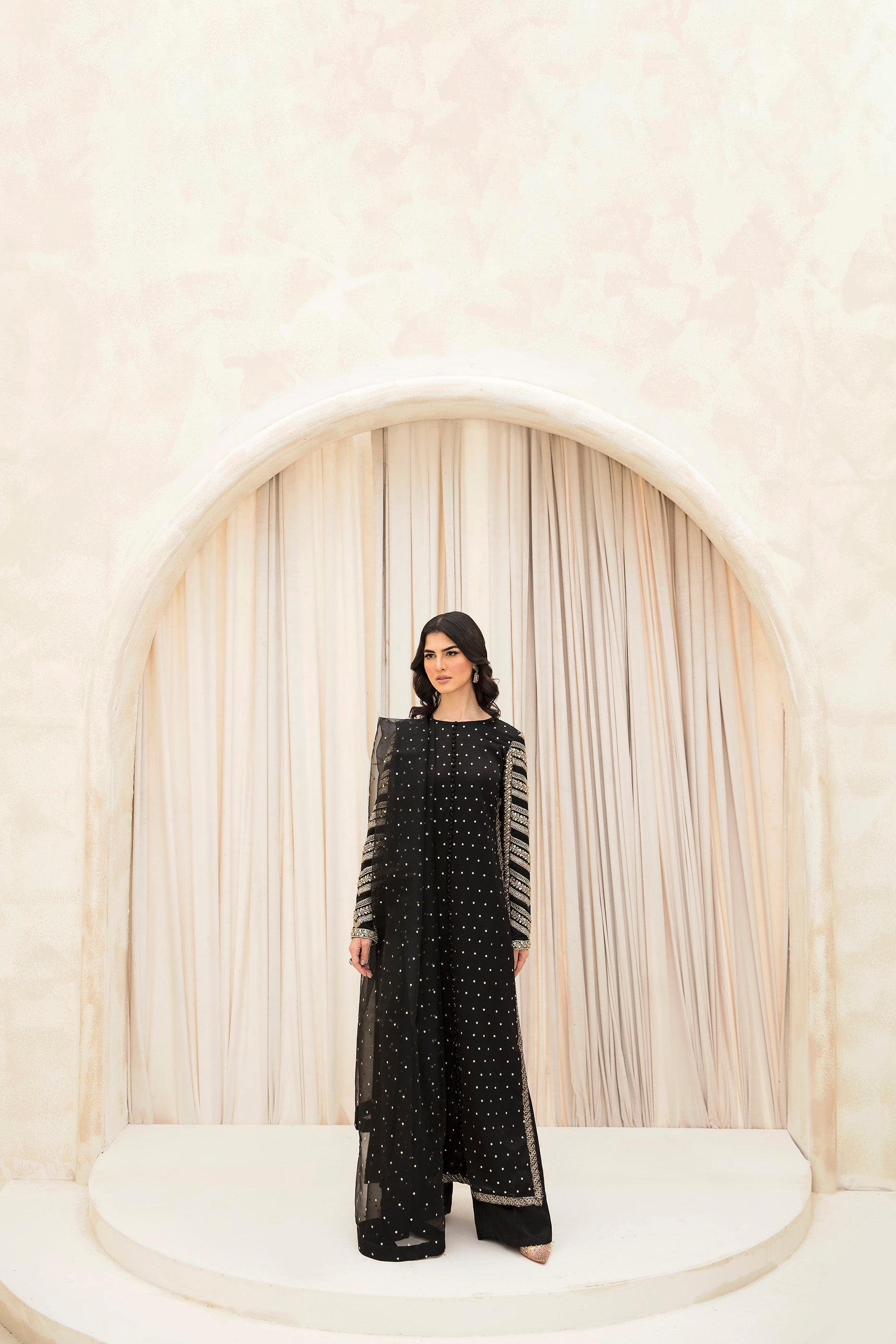 Description: Indulge in the allure of absolute elegance with our exquisite onyx black ensemble.