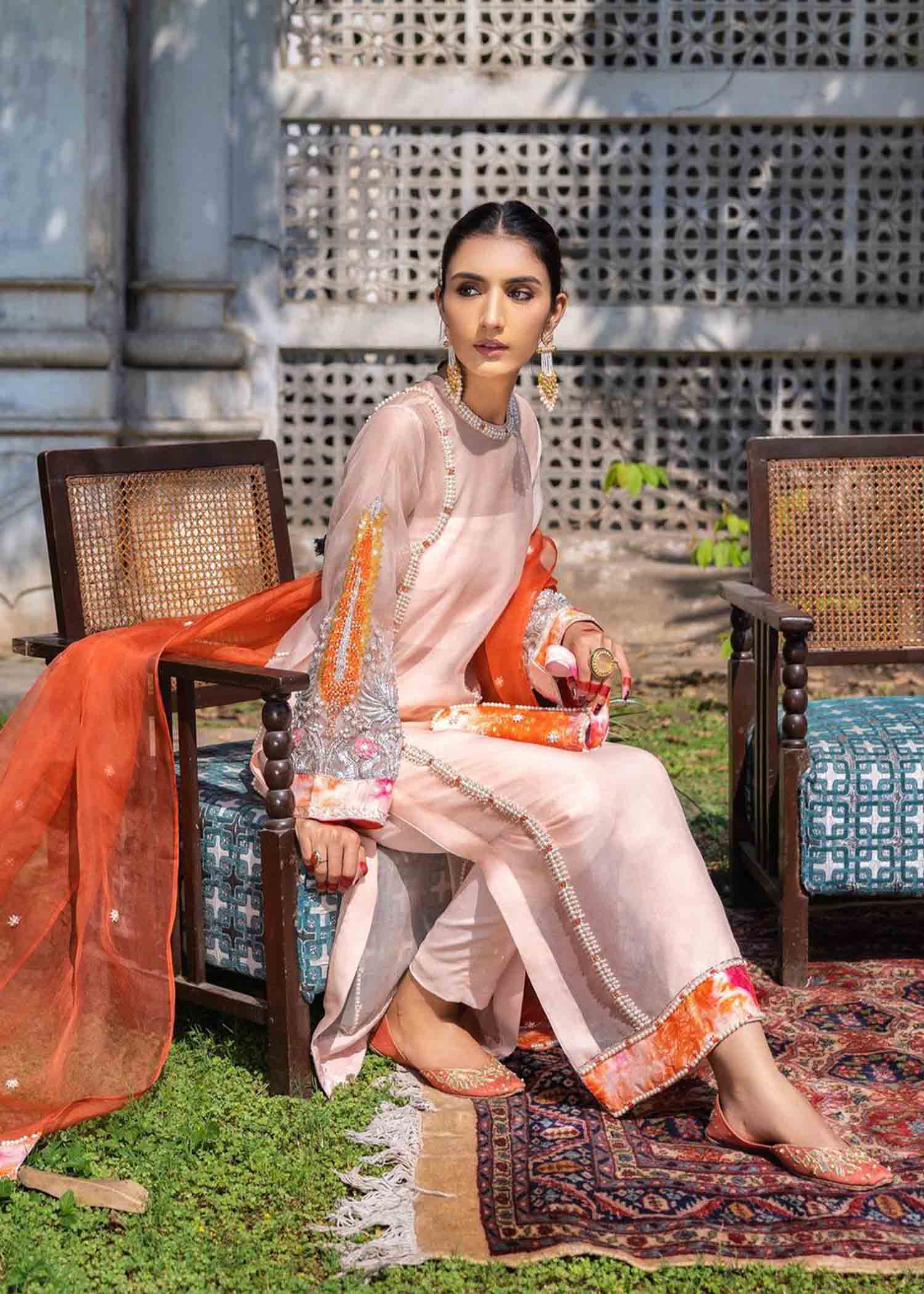 Description: The gentleness of nicely adorned embellishments, complemented with the tangerine of scorching sunlight.