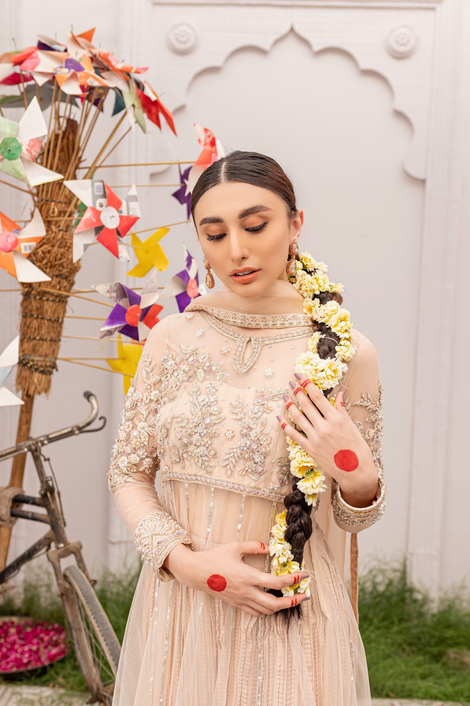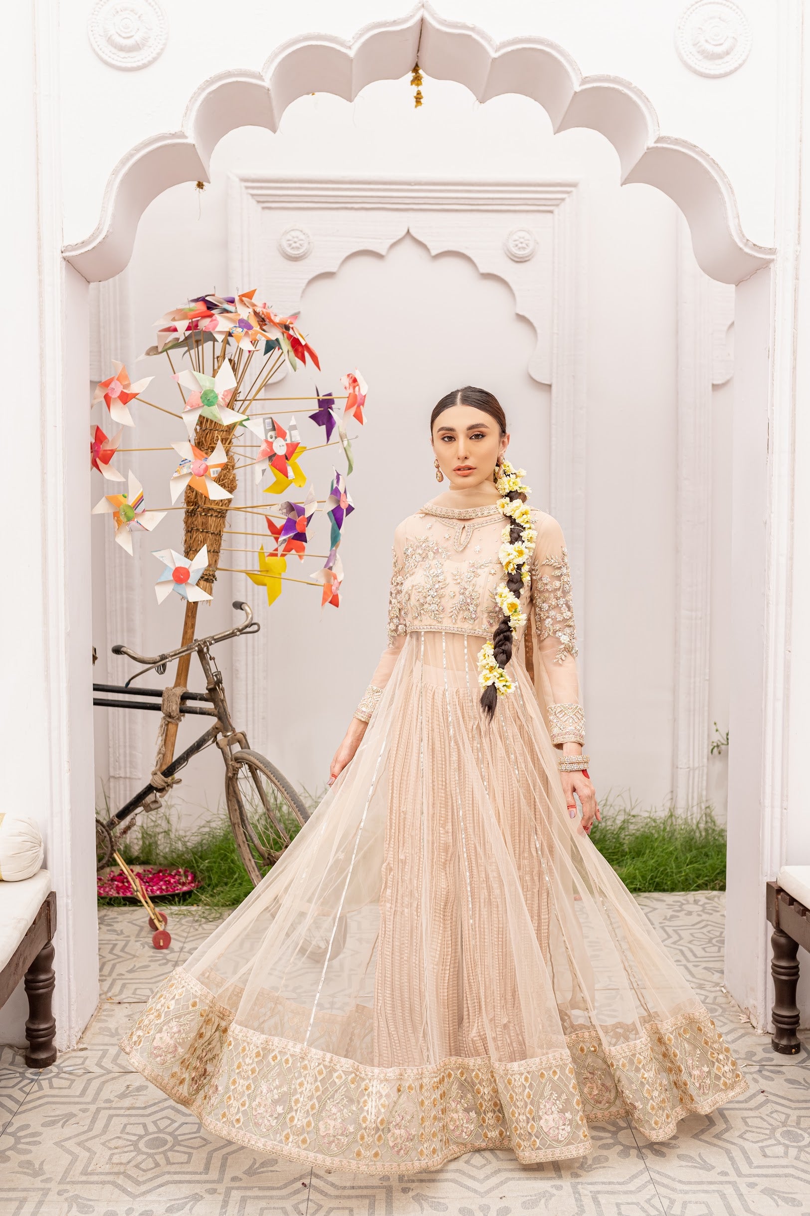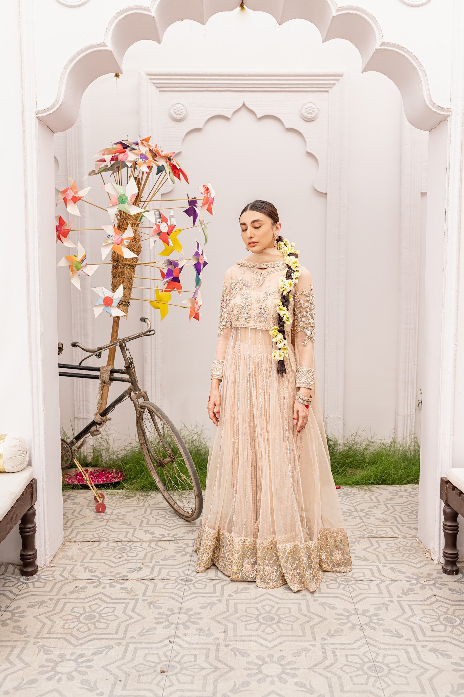 Fabric: Pishwas in Net - Grip Silk Crushed pants - Organza Dupatta.