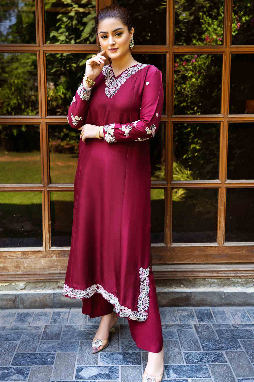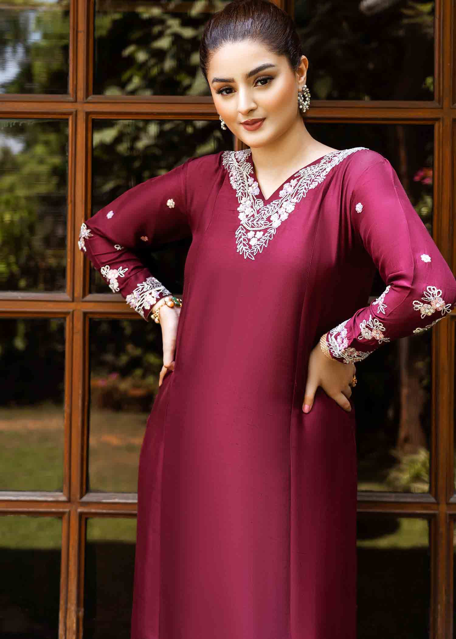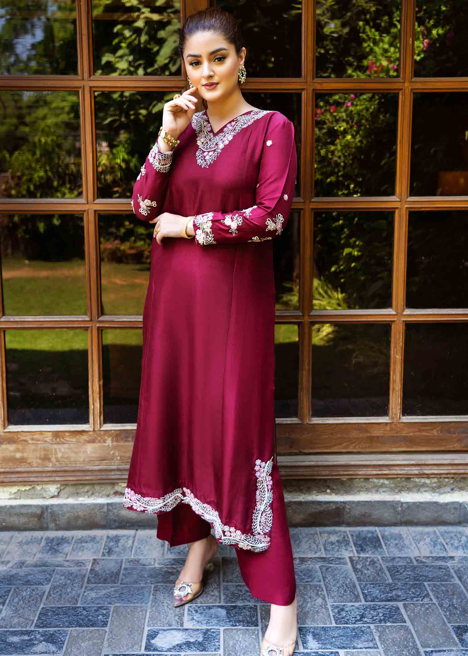 Description: A starking ensemble bedecked with 3d embellishments is a way to captivate your summer noon with an enriching aura of invincibility. we present you our finest piece, specially created for formal evenings. made in pure 80 gms raw silk totally hand embellished.