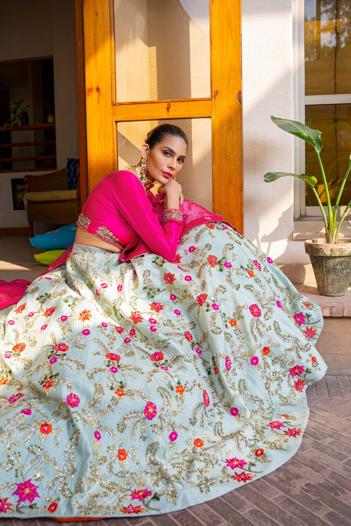 Fabric: Raw Silk Choli - Raw Silk Lehnga - Organza Dupatta