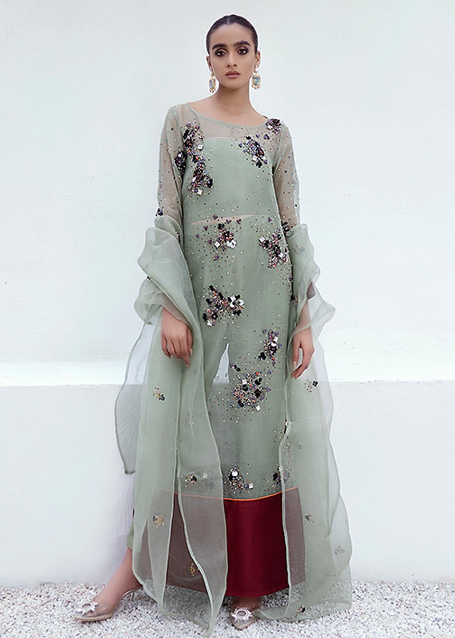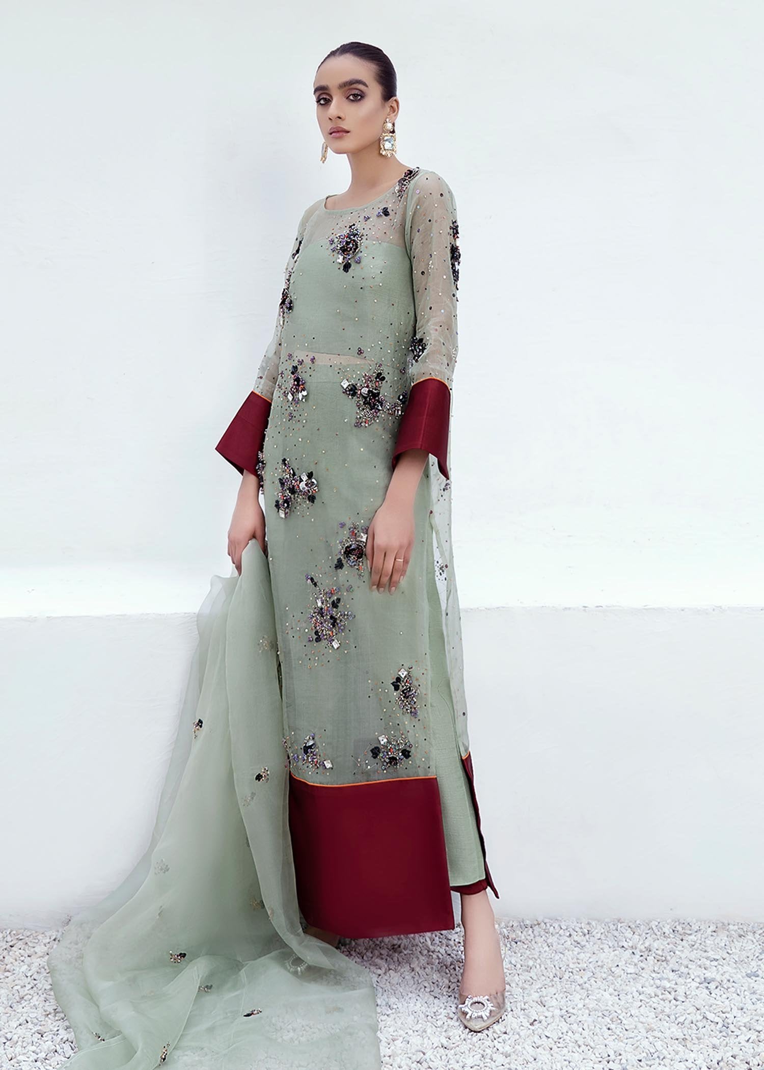 Description: Fusion of intricately embellished stones and stars, shining like a blooming romance. This season we are sharing dreamiest shades of blue and mint green, bedecked with wonderful creations.