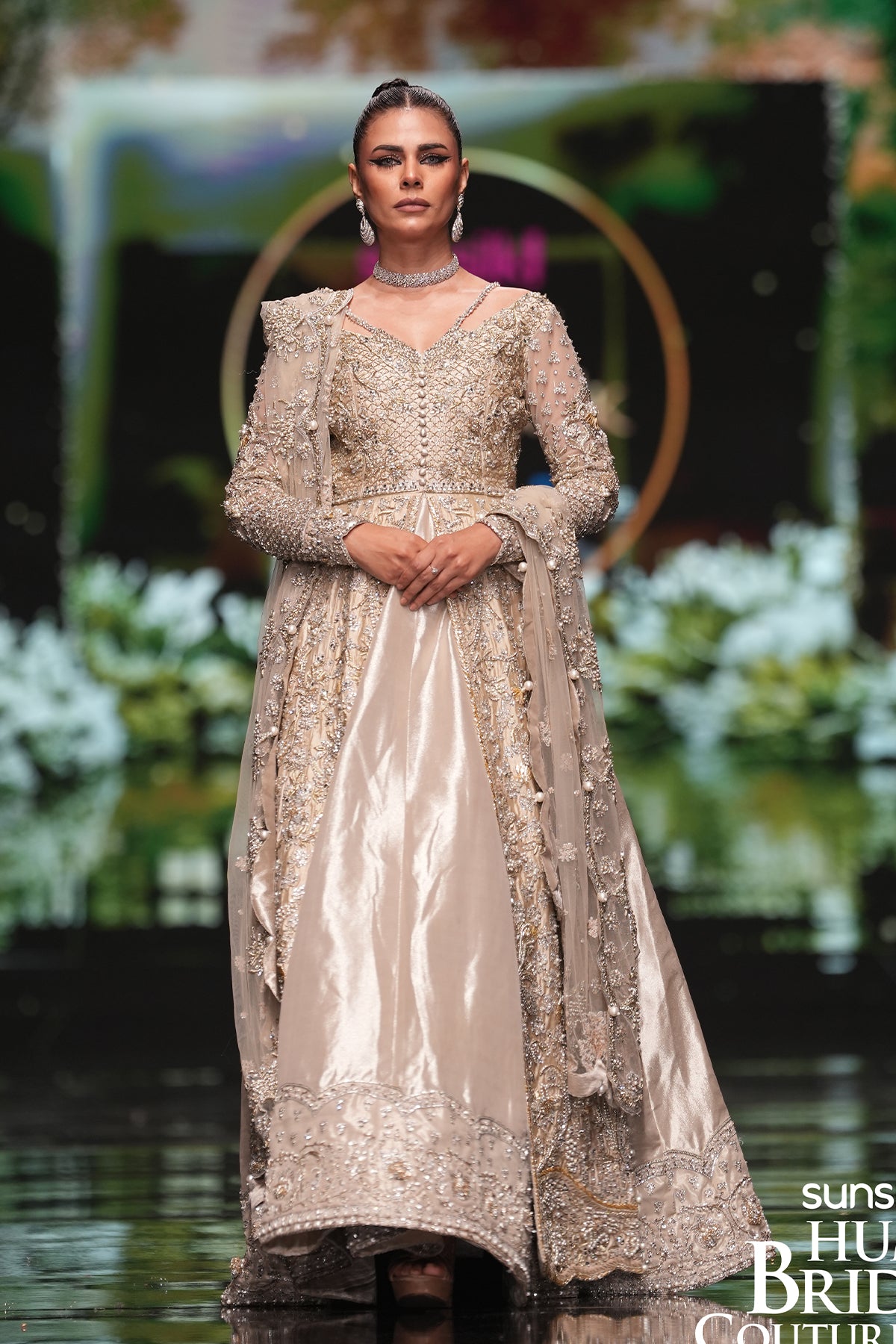 It comes with a net dupatta intricately adorned with matching borders on all four sides and a lavish spray of heavy motifs, adding the perfect balance of grandeur and refinement. This ensemble is surely an eye-catcher.